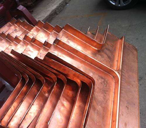 铜止水带接头是以铜含量超过99.99%的电解铜为原料,采用一次性成型方式加工而成的接头形状,目前可加工形状包含止水铜片T型接头、十字型接头以及V型接头。
